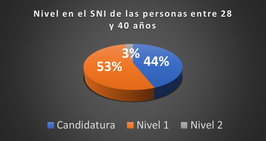 Lo cierto es que, en este caso específico, el de los investigadores Millenials, somos una población muy particular. Esta población de la que me volví parte, no contamos con un contrato de tiempo indeterminado y estamos aplicando constantemente a convocatorias o buscando otras opciones como la de hacer un posdoctorado. Realicé una búsqueda en la que no encontré información vigente, por lo que decidí hacer una encuesta que buscaba conocer a la población del Sistema Nacional de Investigadores. Ésta tenía el objetivo de conocer la situación laboral de estas personas en cuanto a su edad y tipo de contrato. Sólo es una pequeña muestra aleatoria del actual total de integrantes.