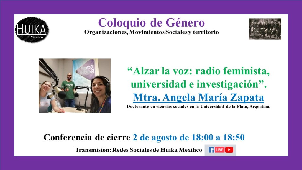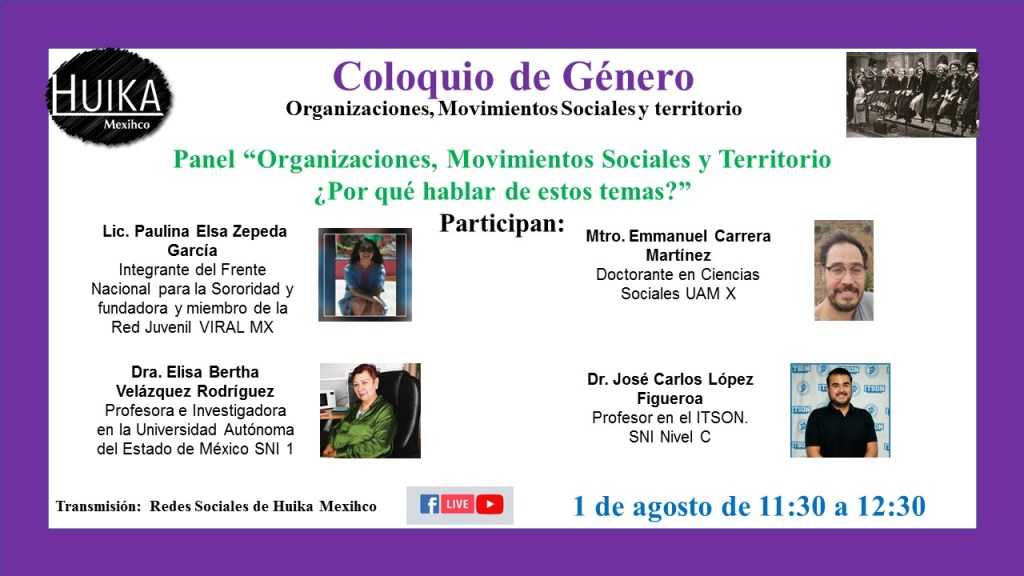 El Coloquio de Género nace como una iniciativa dentro del Proyecto de Huika Mexihco Asociación Civil. El principal objetivo de este Coloquio es reflexionar, discutir, compartir y generar conocimientos con los temas de Género dentro y alrededor de las organizaciones, los movimientos sociales y el territorio en tanto las relaciones teóricas, empíricas y metodológicas.